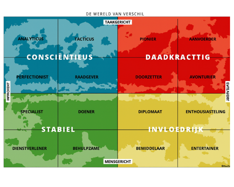Niemand is volledig rood, geel, groen of blauw; iedere professional heeft alle gedragskleuren in zich. De kaart maakt juist zichtbaar welke gedragsstijlen bij jou domineren en hoe die zich tot elkaar verhouden. Zo ontstaat een compleet beeld van jouw natuurlijke manier van werken en de gebieden waarop je kunt groeien.